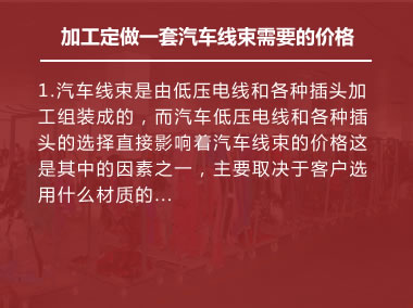 我公司系山東省龍口市民營(yíng)企業(yè),全公司總占地面積72畝,建筑面積18000平方米,固定資產(chǎn)3000萬(wàn),專(zhuān)業(yè)生產(chǎn)設(shè)備150余臺(tái)套,檢測(cè)設(shè)備20余臺(tái)套,技術(shù)力量雄厚,檢測(cè)手段齊全。主要生產(chǎn)各種汽車(chē)電線(xiàn)、家用電器線(xiàn)束、汽車(chē)充電電纜、 汽車(chē)全車(chē)線(xiàn)束、汽車(chē)電瓶線(xiàn)/電器盒、電動(dòng)車(chē)專(zhuān)用導(dǎo)電線(xiàn)、電子連接線(xiàn)、聚氟乙烯電線(xiàn);汽車(chē)、拖拉機(jī)及各種機(jī)動(dòng)車(chē)線(xiàn)束總成。 我公司所有產(chǎn)品已通過(guò)國(guó)際TS16949認(rèn)證,產(chǎn)品長(zhǎng)期以來(lái)一直給北汽、重汽、海信、海爾、澳柯瑪?shù)戎麖S(chǎng)商配套。